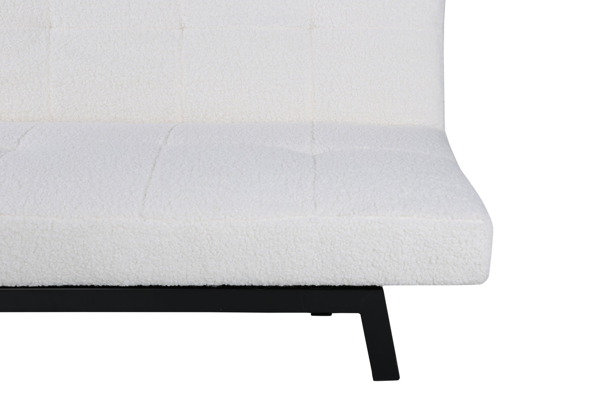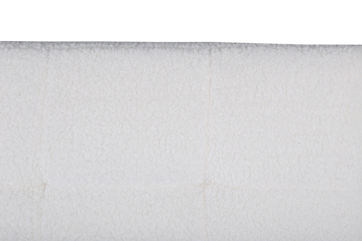 Det gennemtænkte design med rene nordiske linjer, enkelt formsprog og dekorative dybtsyninger skaber et stilrent og harmonisk udtryk i stuen. Sofaen er betrukket med blødt teddy-stof i hvid farve, som giver et indbydende og varmt udtryk til rummet. Et smart og moderne supplement til hjemmet – ganske enkelt!