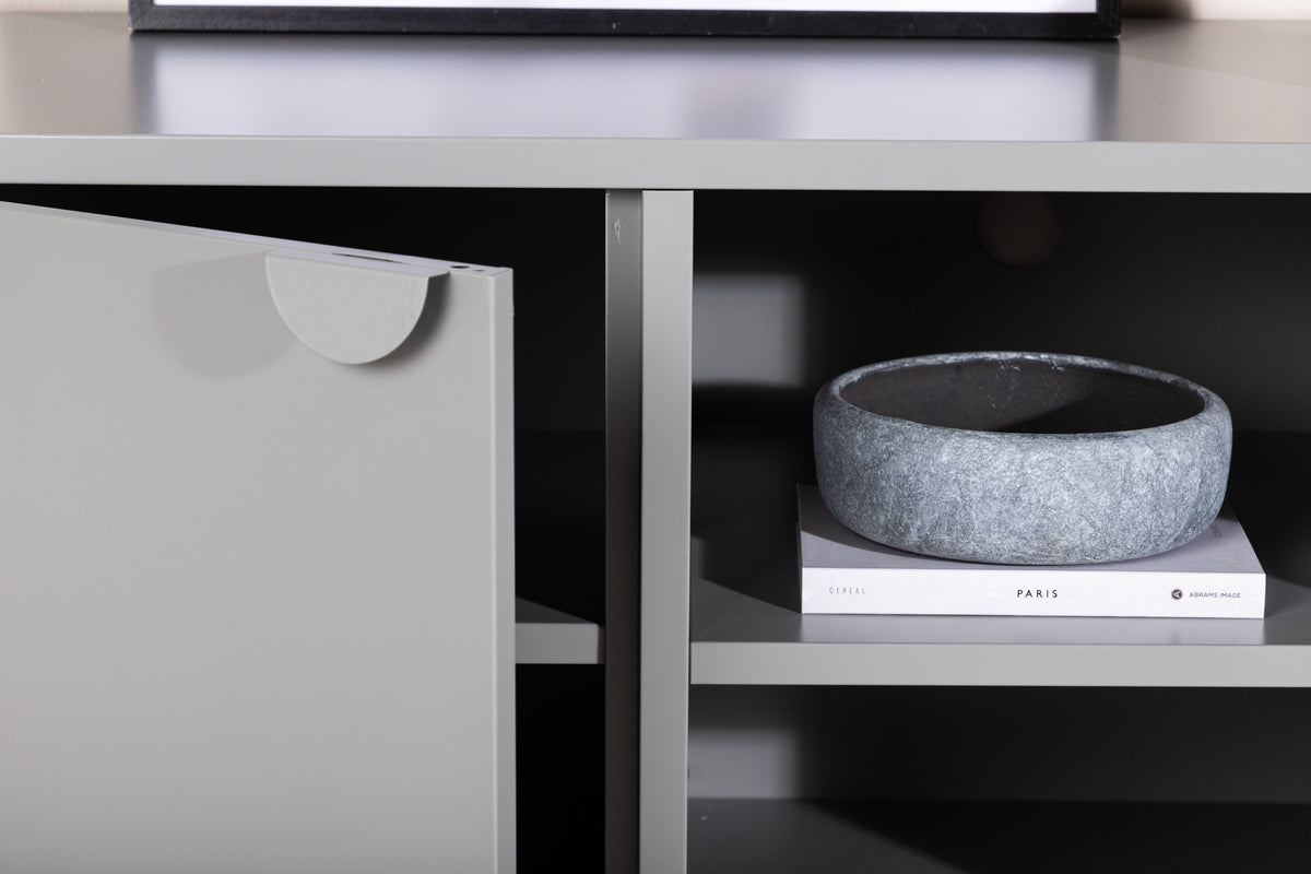 Det perfekte TV-bord til det moderne og smarte hjem! Dette bord fra serien Piring er lavet af gråt stål og har en praktisk dybde, der giver masser af opbevaringsplads. Bordet har to hylder med to rum til skjult opbevaring og et midterafsnit med åben opbevaring – perfekt til stilfulde detaljer som en moderne vase eller en bog. Designet er enkelt, utroligt gennemtænkt og følger både tidens trend og et tidløst udtryk!