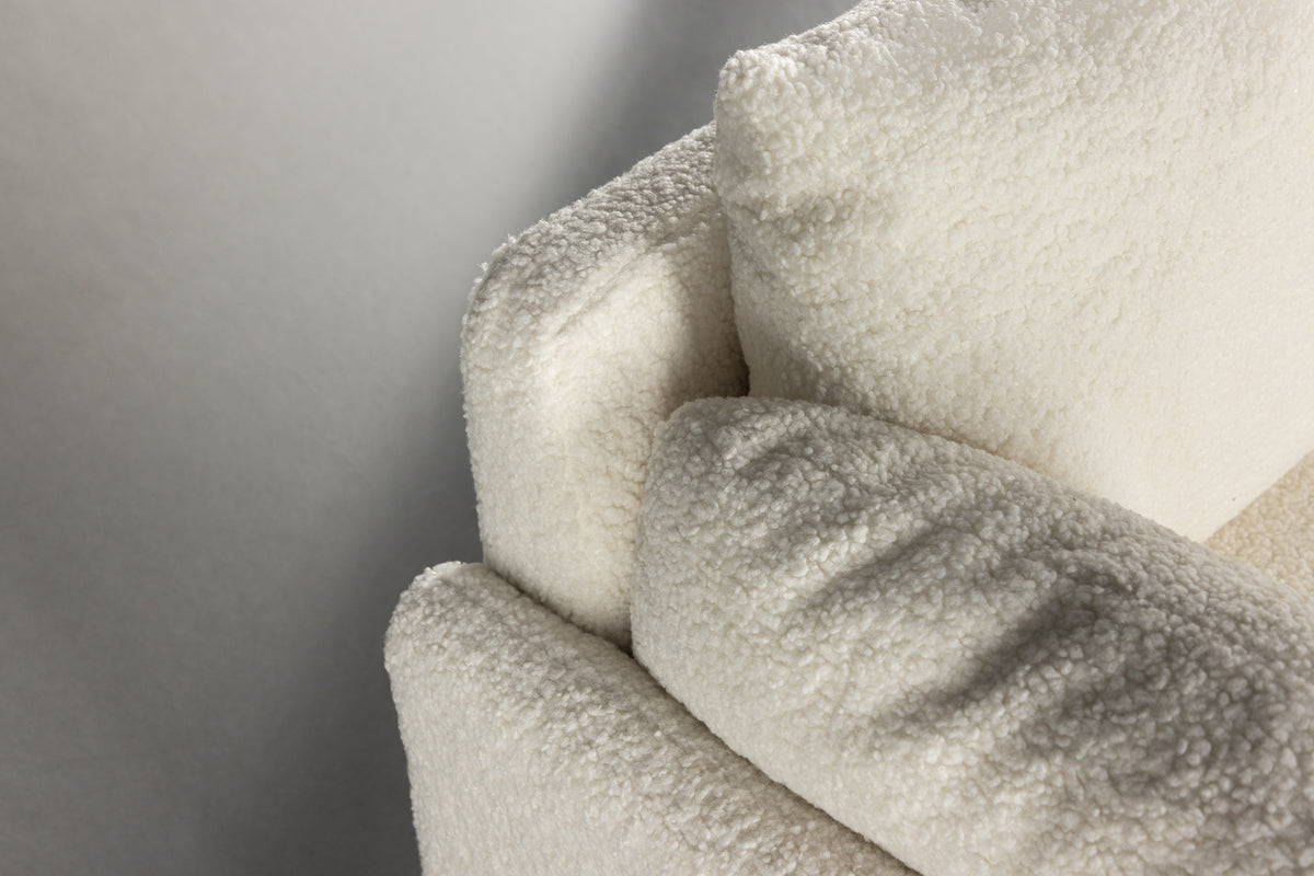 Det hvide teddy-stof er ikke så sart, som man måske tror – følg vores plejeanvisninger for de bedste råd. Sofaen har ingen ben, men er i stedet understøttet af sofaens egen ramme, hvilket giver et gennemtænkt og iøjnefaldende look. Indret stuen charmerende og skab en varm atmosfære i dit hjem. Her får du en sofa-drøm uden lige!