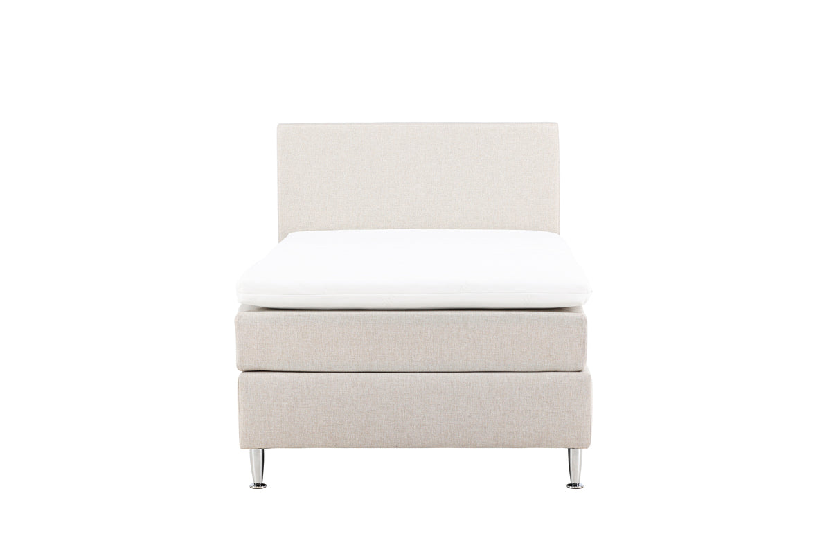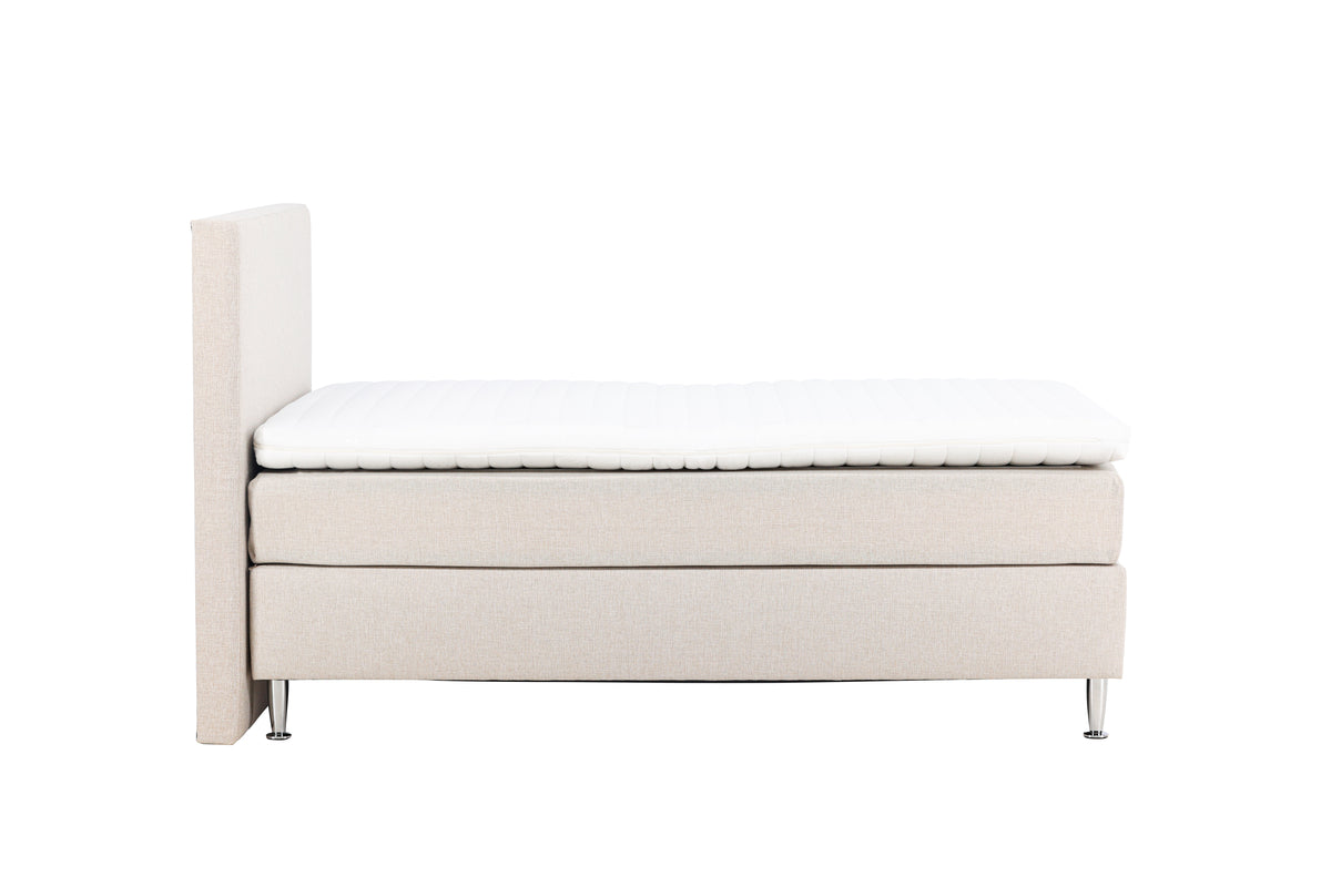 Toledo er designet til at løfte dit rum og gøre det til et indbydende tilflugtssted. Den elegante beige farve giver en følelse af lethed og luftighed, mens de stilfulde plastikben tilføjer et moderne touch, der fremhæver din indretning. Når natten falder på, kan du læne dig tilbage og slappe af i Toledo. Sengens fasthed giver dig enestående stabilitet og komfort, hvilket resulterer i en dyb og forfriskende søvnoplevelse. Lad alle dagens bekymringer og stress smelte væk, mens du synker ned i Toledo.