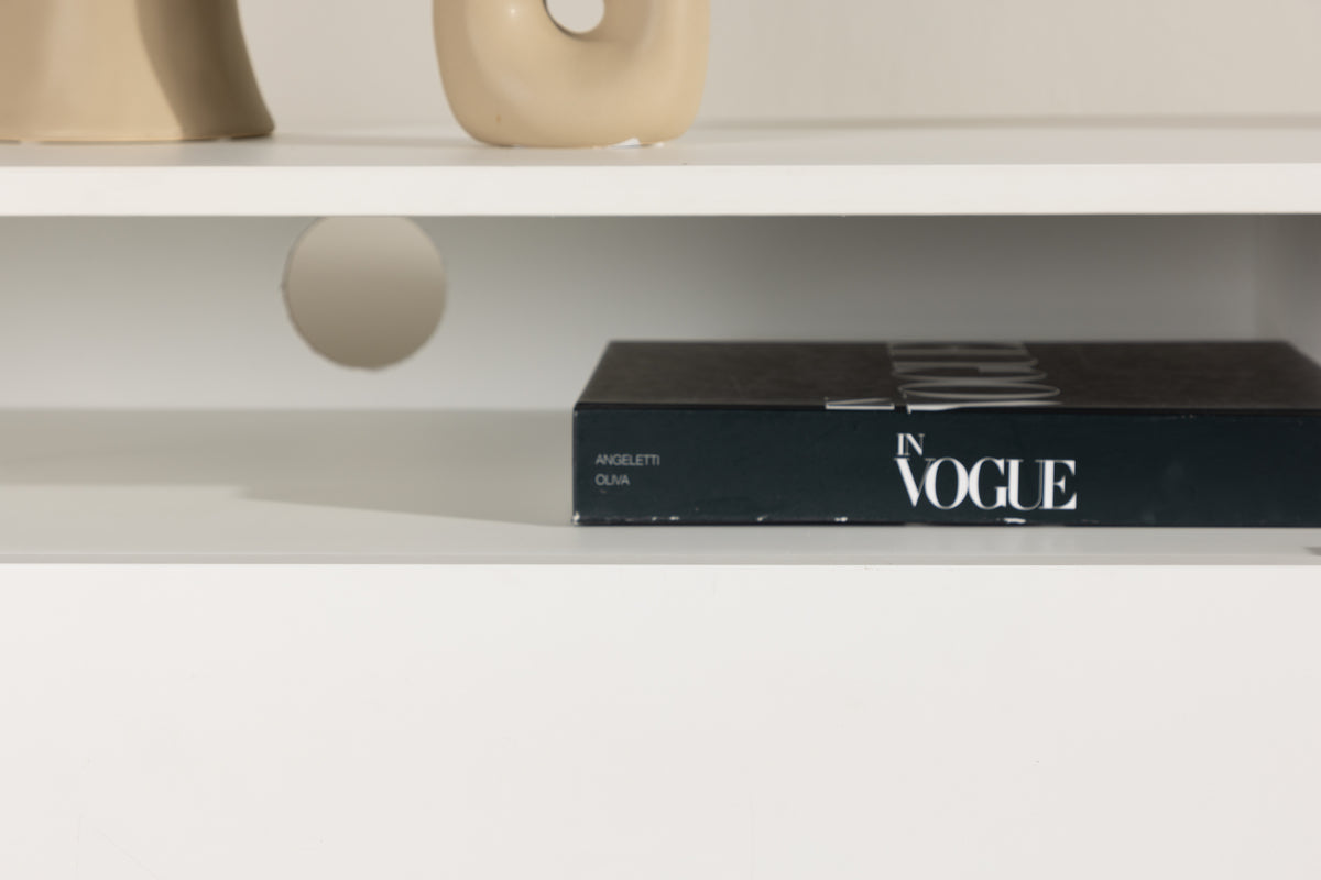 Navarra TV-bordet har to rummelige skuffer, perfekte til diskret opbevaring af alt fra fjernbetjeninger til yndlingsbøger. De åbne hylder ovenfor giver dig fleksibilitet til at vise smukke genstande frem eller holde ofte brugte ting inden for rækkevidde. Skab din egen harmoni ved at dekorere toppen med elegante lysestager og stilfulde højttalere for en komplet TV-oplevelse.