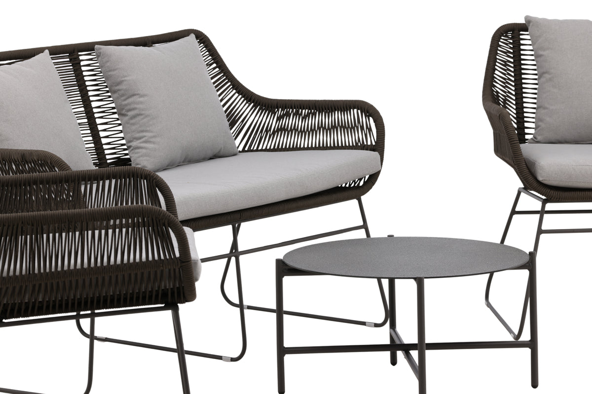Vi præsenterer stolt vores Davao-sofagruppe – den perfekte løsning til at bringe komfort og elegance til dit udendørsområde. Davao-sofagruppen er en del af vores Venture Home-kollektion, skabt med passion for udendørsliv og et øje for enkelhed og stil. Denne stilfulde sofagruppe leveres komplet med en rummelig 2-personers sofa, to komfortable stole og et praktisk bord, der skaber den perfekte ramme for socialt samvær og afslapning.