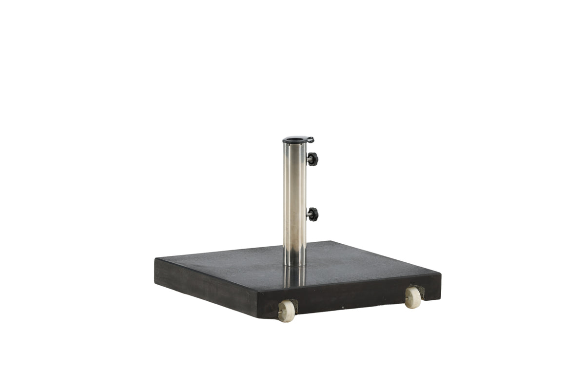 Simpel og stilfuld parasolfod i sort. Robust konstruktion med to hjul og håndtag. Vægt: 40 kg. Sørg for at opbevare din parasolfod korrekt. Ved risiko for frost skal parasolfoden opbevares tørt og varmt for at mindske risikoen for frostsprængninger.