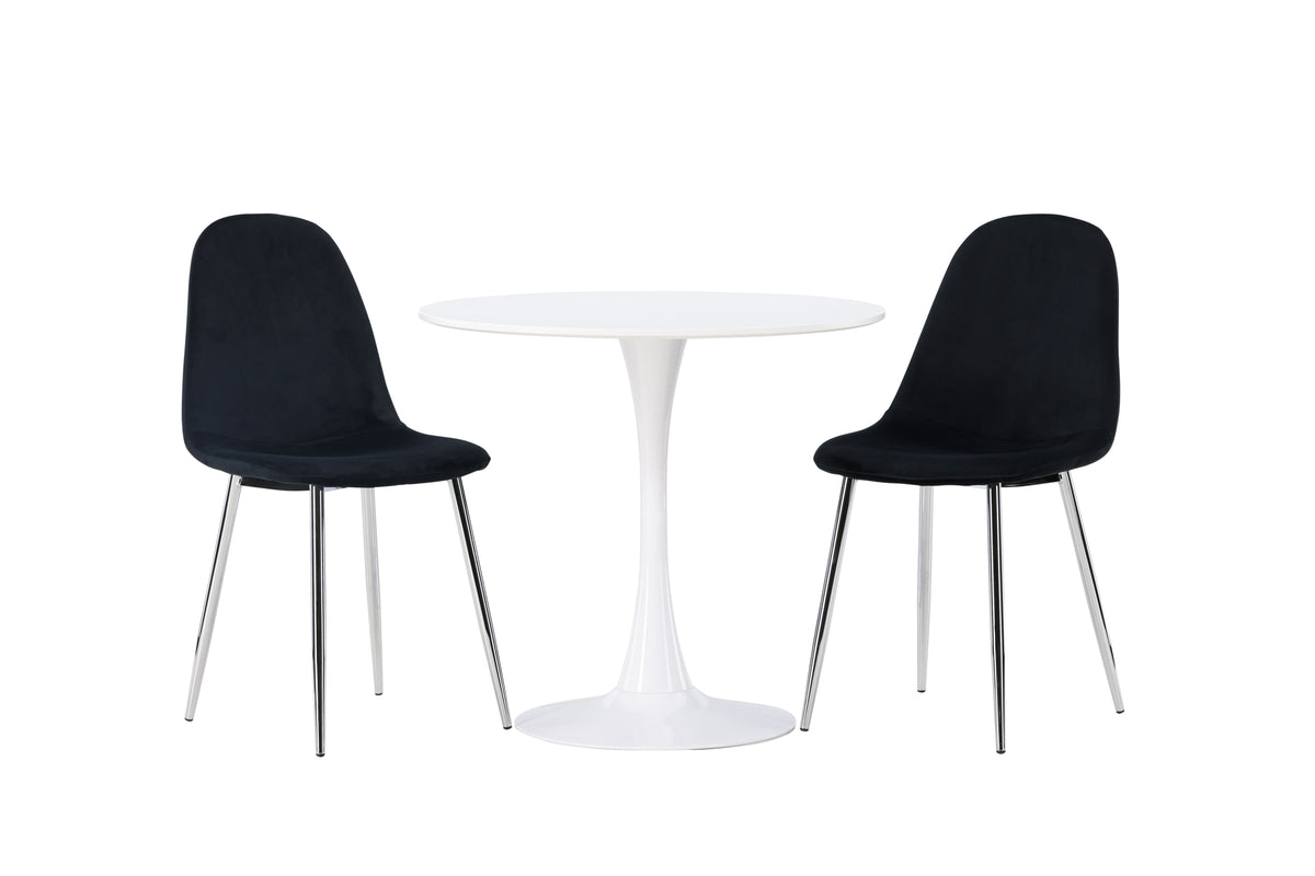 Hamden & Polar rundt spisebord Ø80 hvid + 2 sorte spisestole